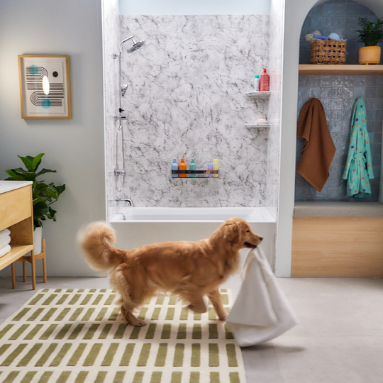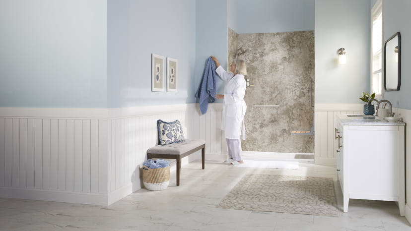 Premium Bath Surfaces: Choose from a full line of non-porous, antimicrobial surfaces available in stone patterns, marble textures, and contemporary solids.
